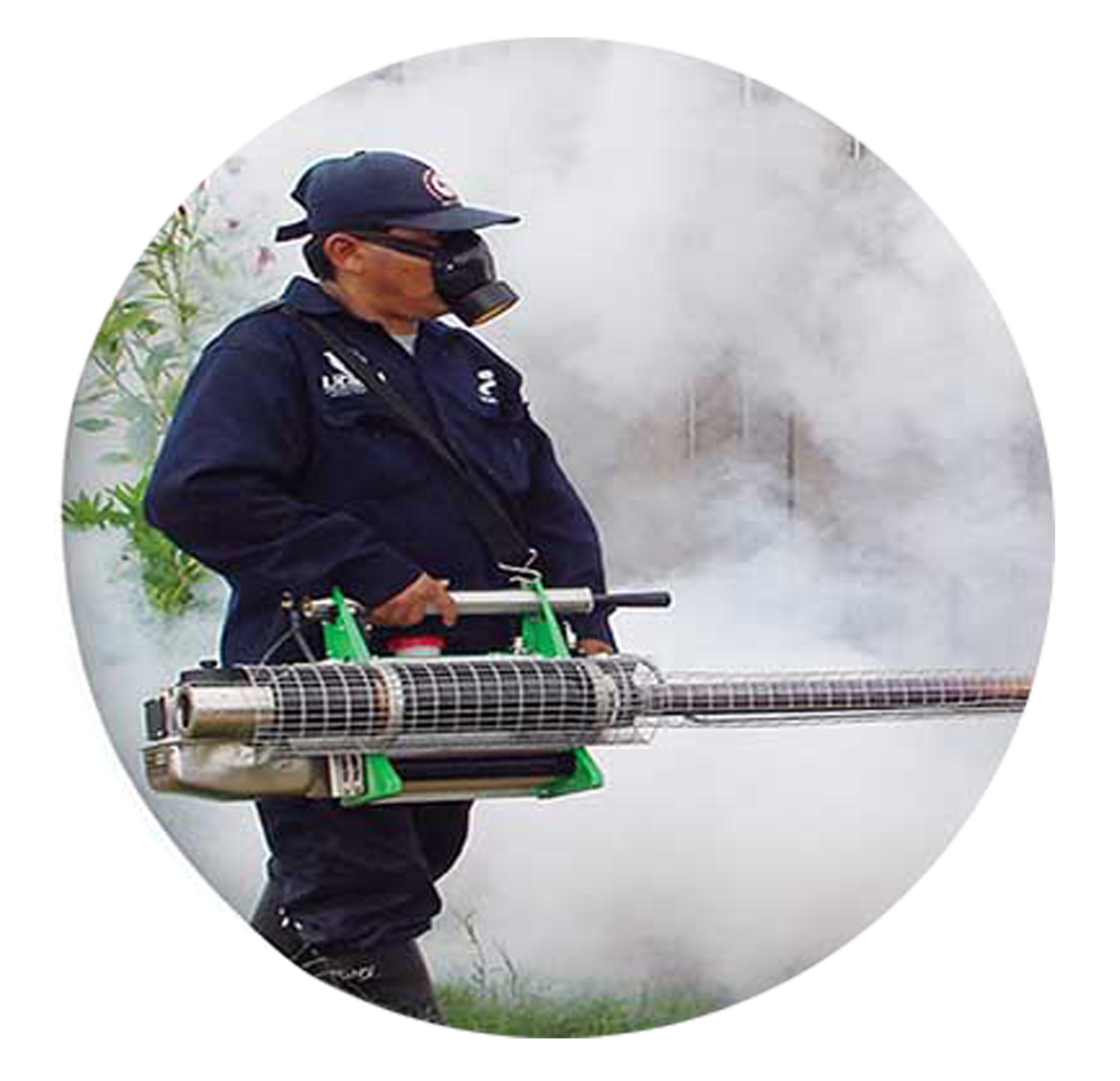 يعمل الجهاز بنظرية THERMAL FOGGING وهي عبارة عن طريق الحقن المباشر حيث يتم تحويل المبيدات الذائبة في السولار الي صورة ضباب حراري عند ملامستة للهواء الخارجي عن طريق التكثيف • الجهاز يعمل بغرفة احتراق وليس بمحرك • الجهاز مصمم طبقا للمواصفات القياسة العالمية لاجهزة الضباب المحمولة علي سيارة وطبقا لمواصفات منظمة الصحة العالمية
